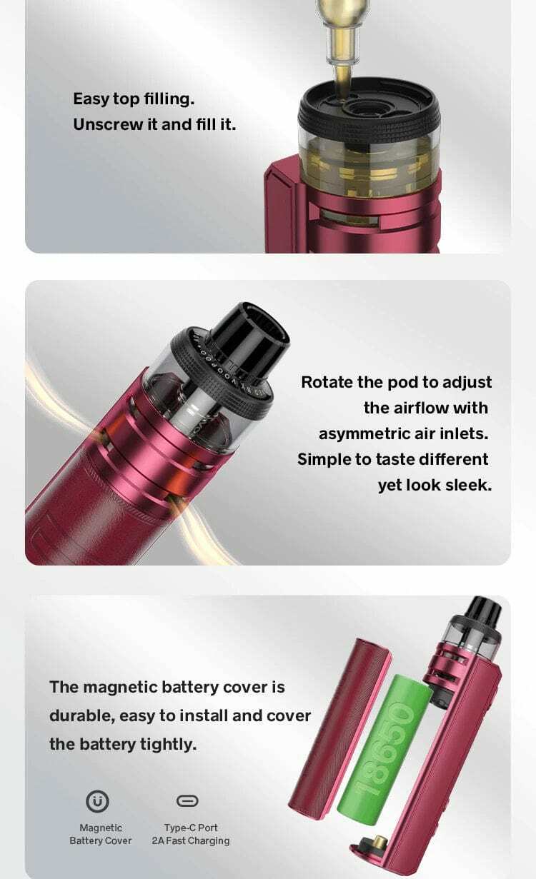 - 流暢氣流:通過獨特的氣道和雙合一技術,使氣流順暢並增強風味。